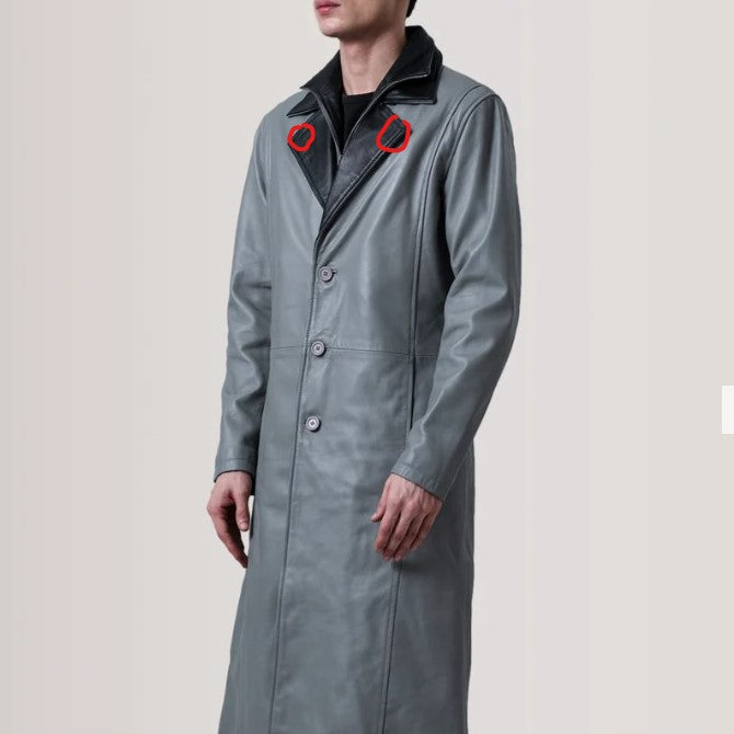 Charlton Black Leather Single Breasted Coat with the customizations you’ve outlined: