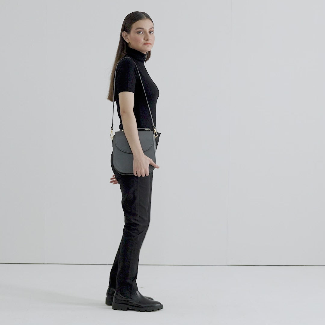 The Sandra Grey Leather Saddle Bag